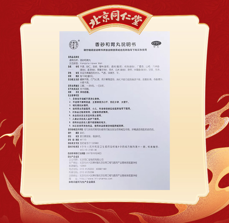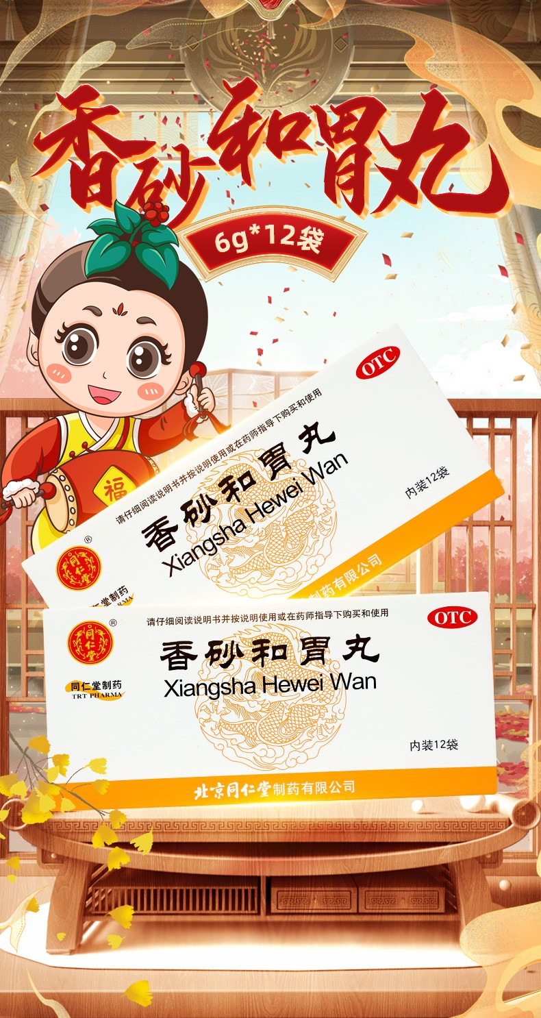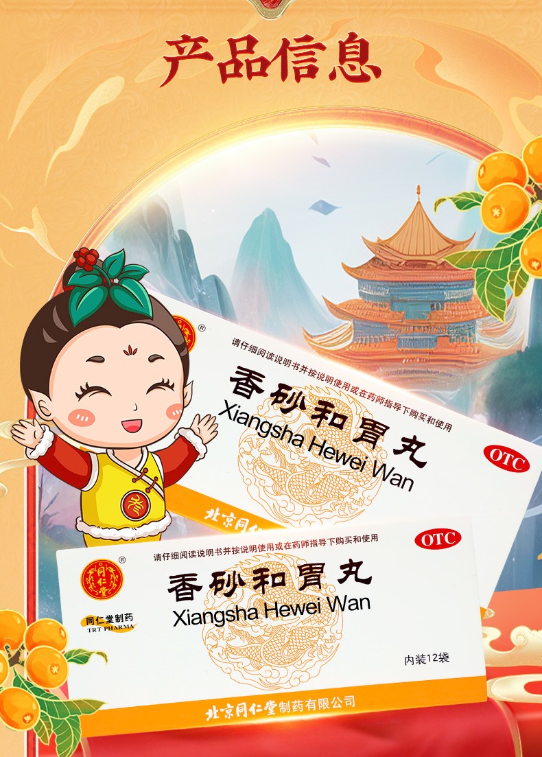 - 商品名称:同仁堂 香砂和胃丸 6g*12/盒