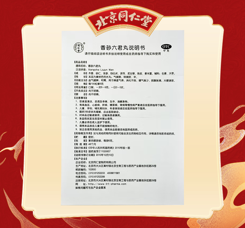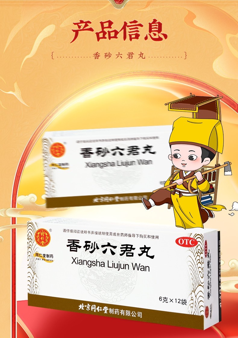 - 商品名称:同仁堂 香砂六君丸 6g*12/盒