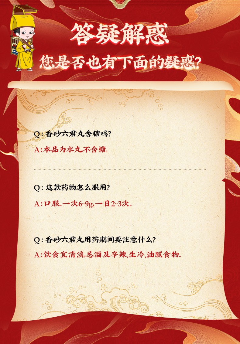 - 【成份】:木香、砂仁、党参、炒白术、茯苓、陈皮、姜半夏。辅料:生姜、大枣。