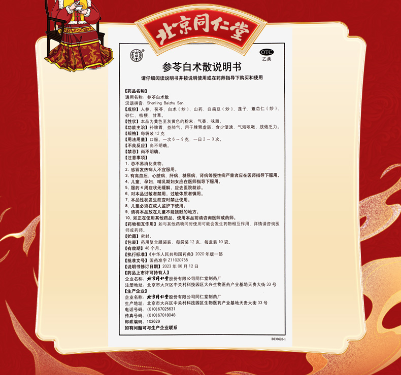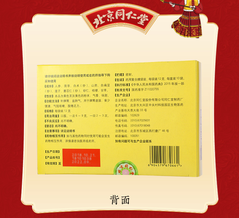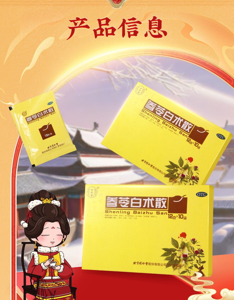 - 商品名称:同仁堂 参苓白术散 12g*10袋/盒