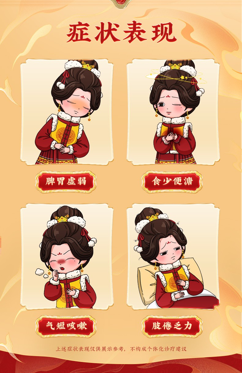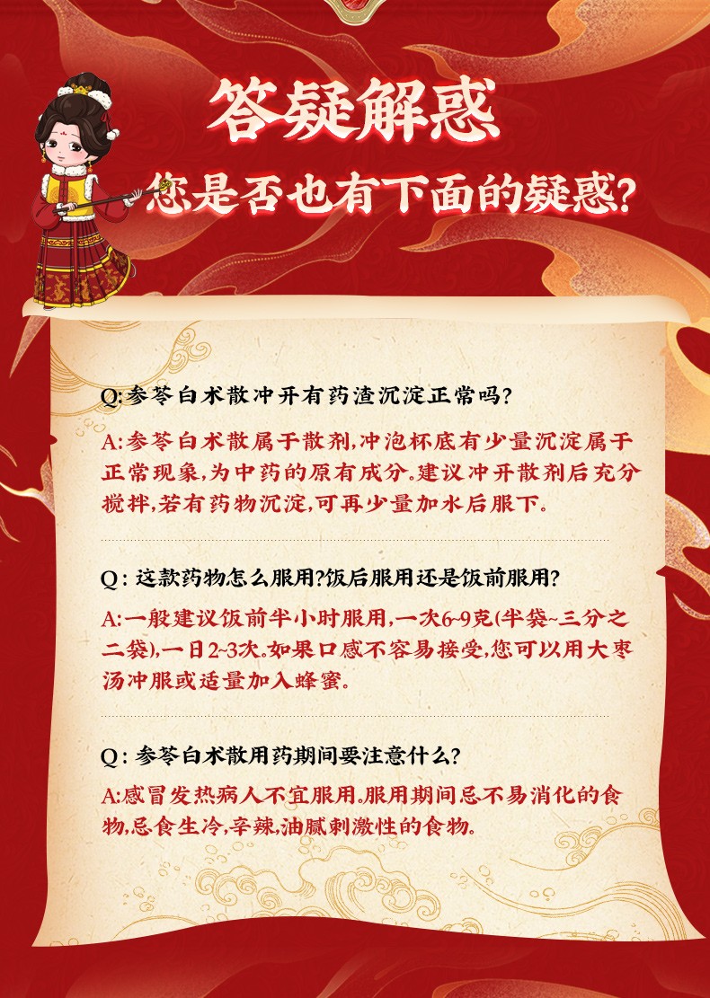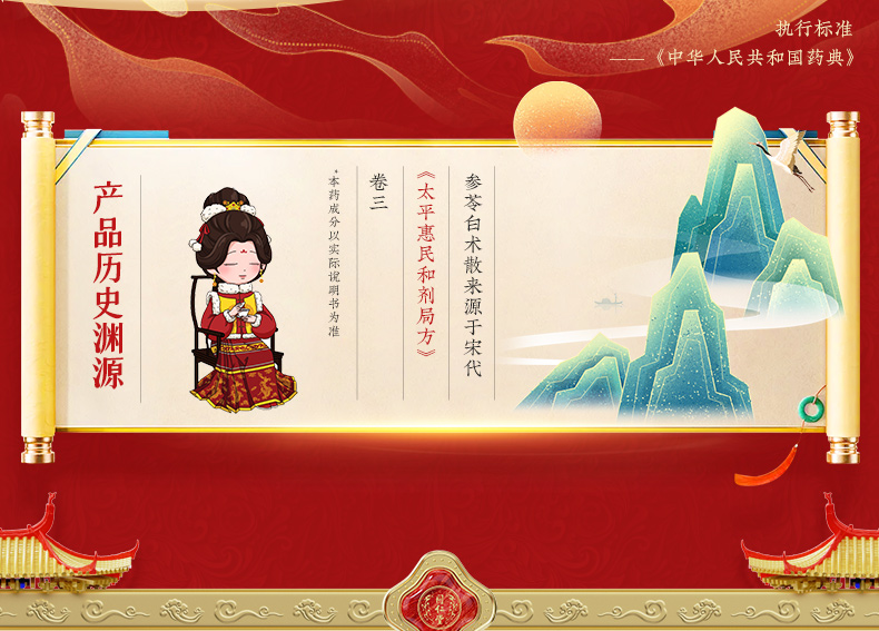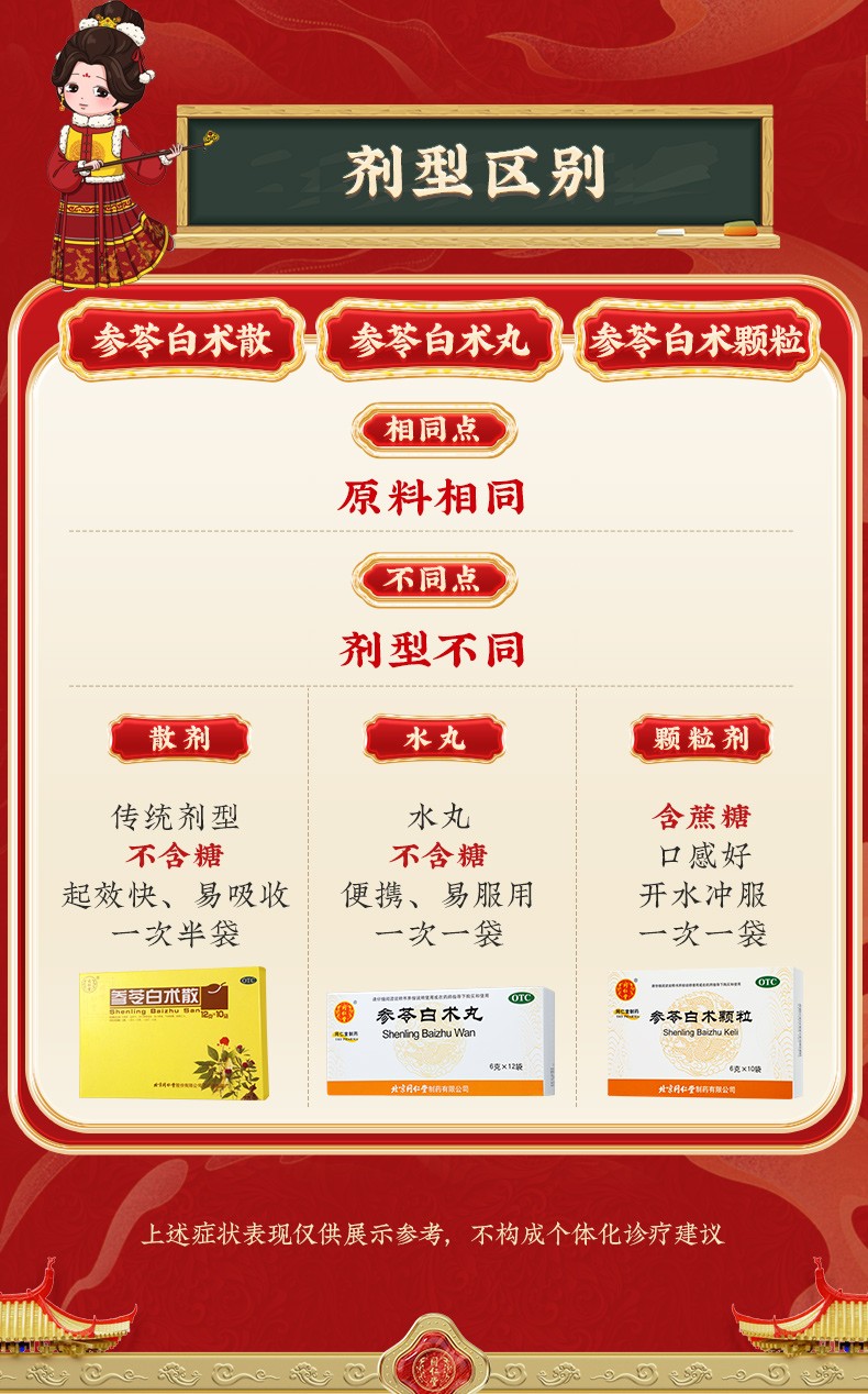 - 【成份】:白扁豆、白术、茯苓、甘草、桔梗、莲子、人参、砂仁、山药、薏苡仁。