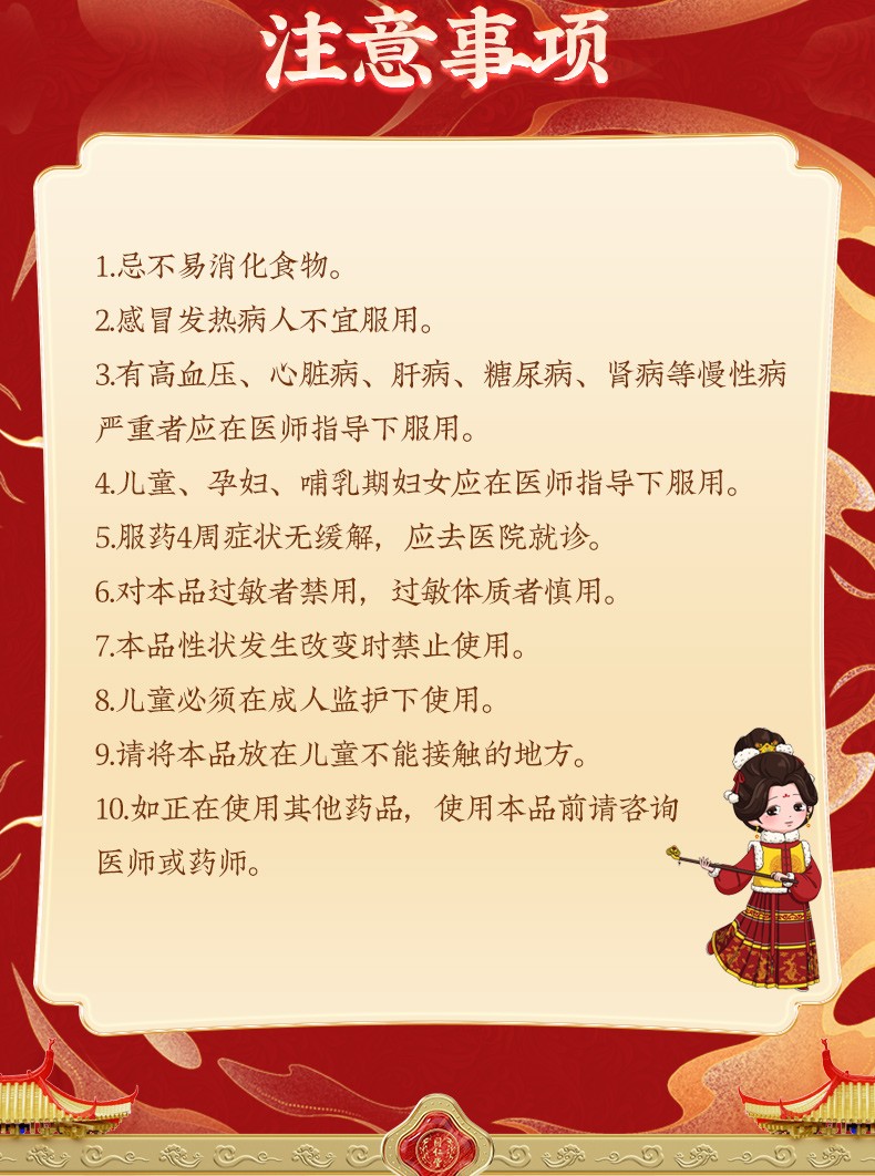 3、有高血压、心脏病、肝病、糖尿病、肾病等慢性病严重者应在医师指导下服用。