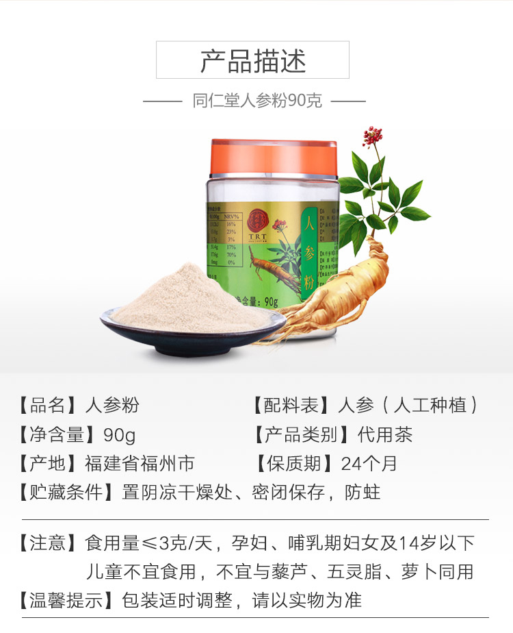 北京同仁堂干制红参片58g/盒东北人参切片礼盒装送长辈