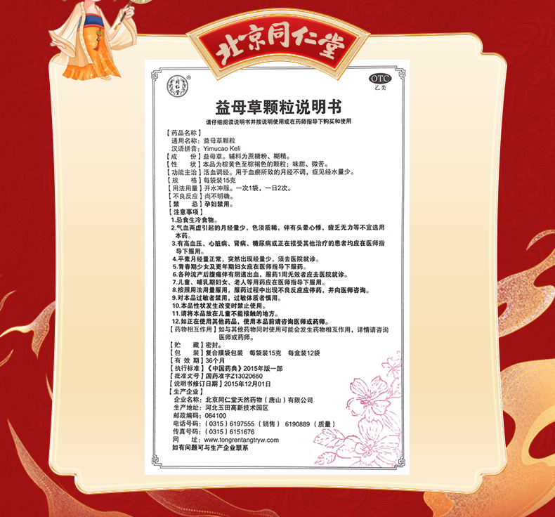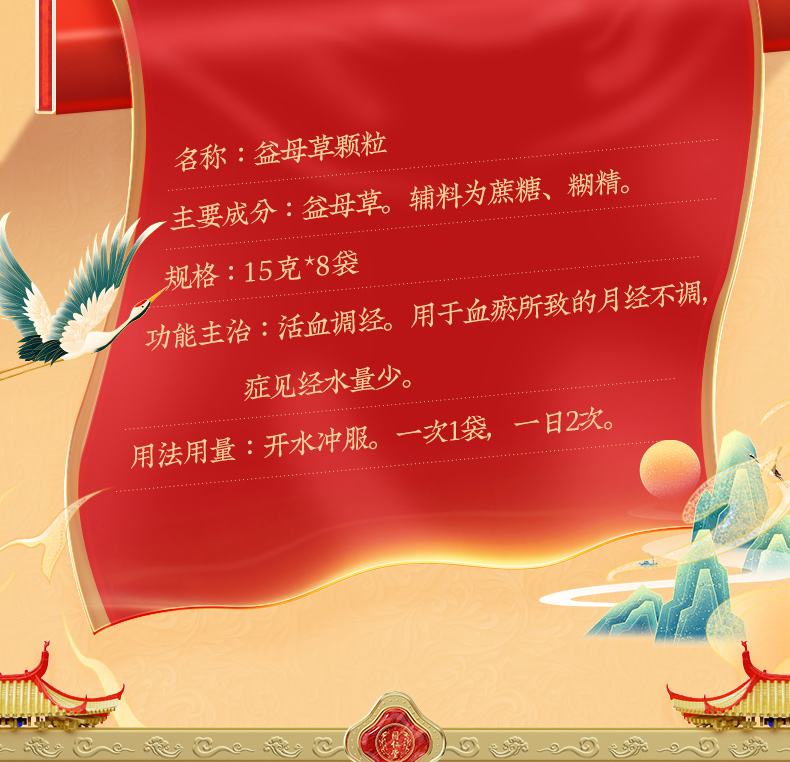 - 商品名称:同仁堂 益母草颗粒 15g*8/盒