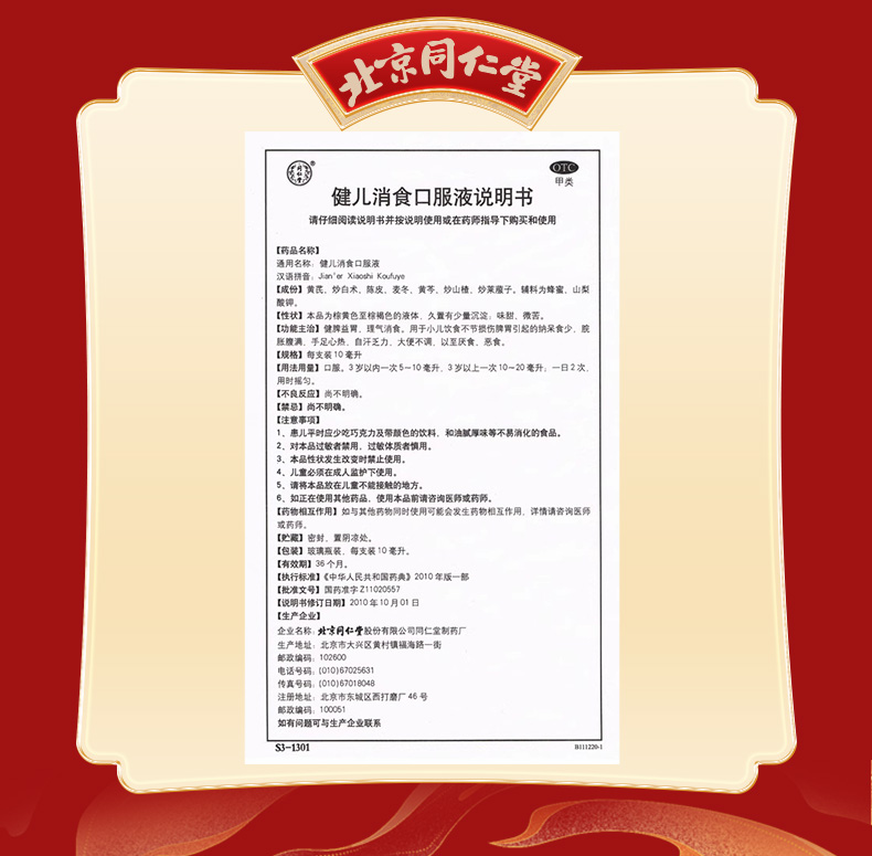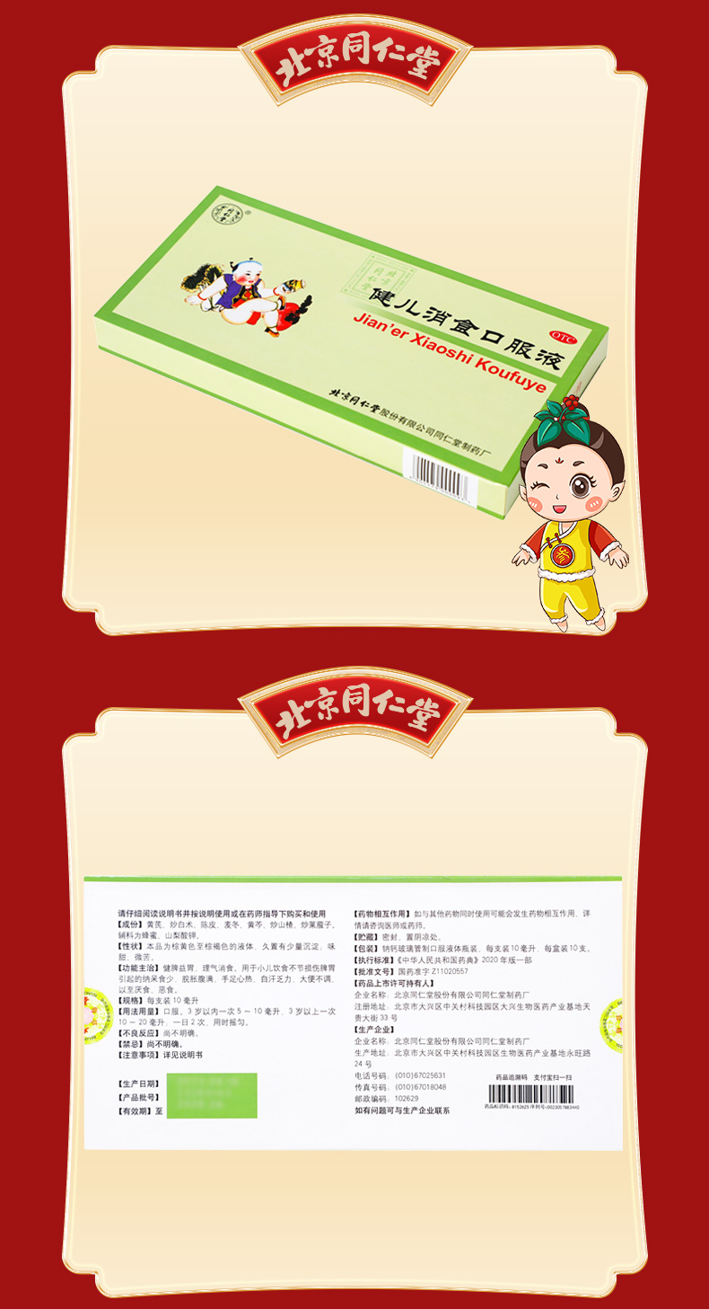 - 商品名称:同仁堂 健儿消食口服液 10ml*10/盒