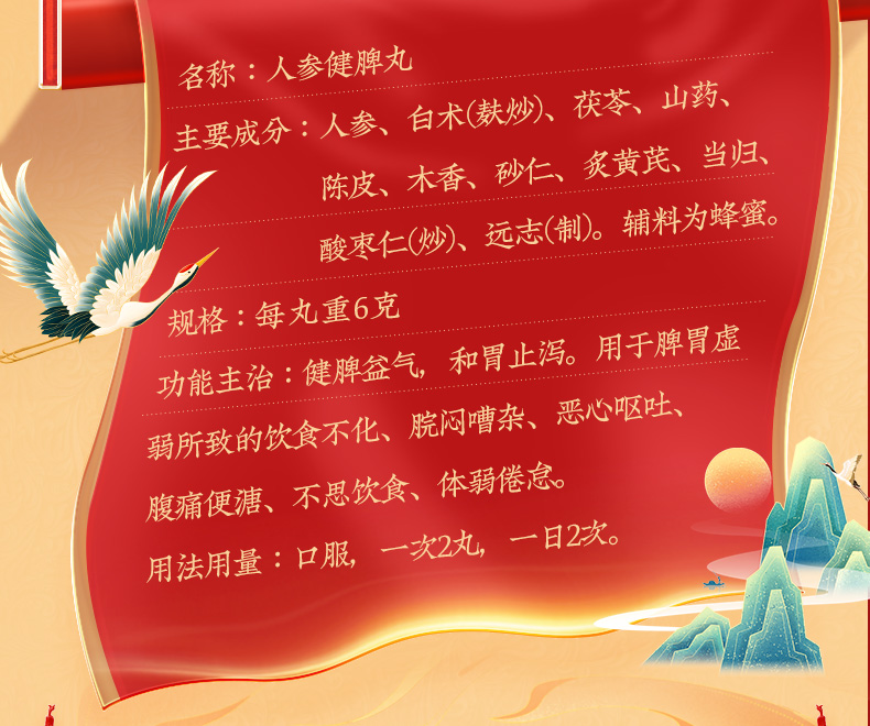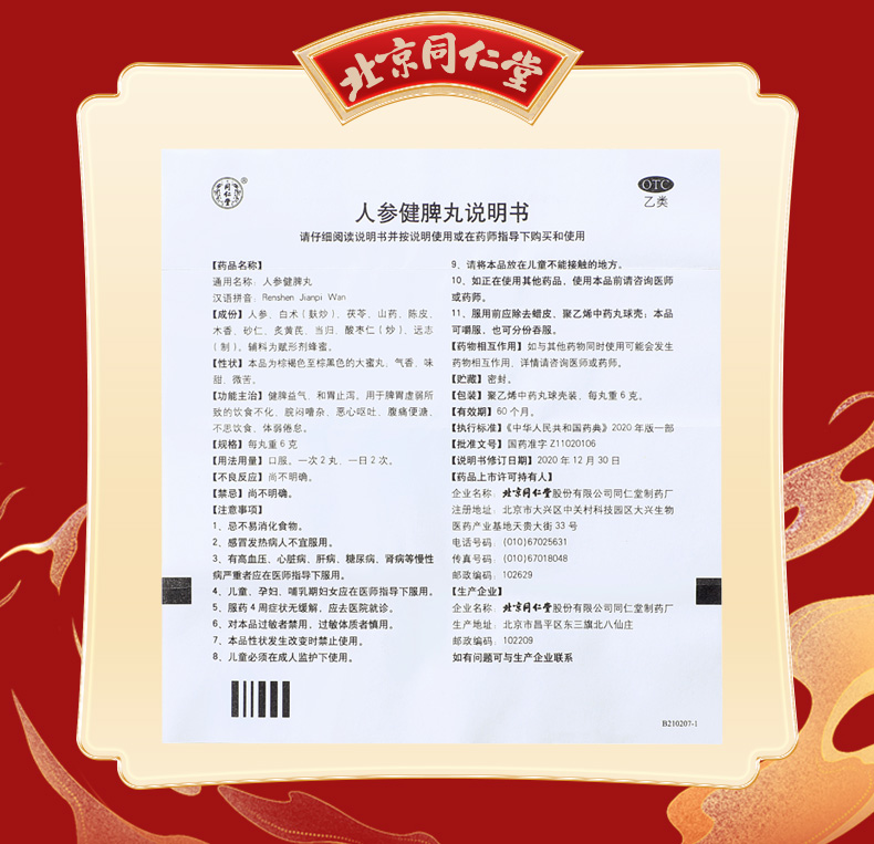 - 商品名称:同仁堂 人参健脾丸 6g*10/盒