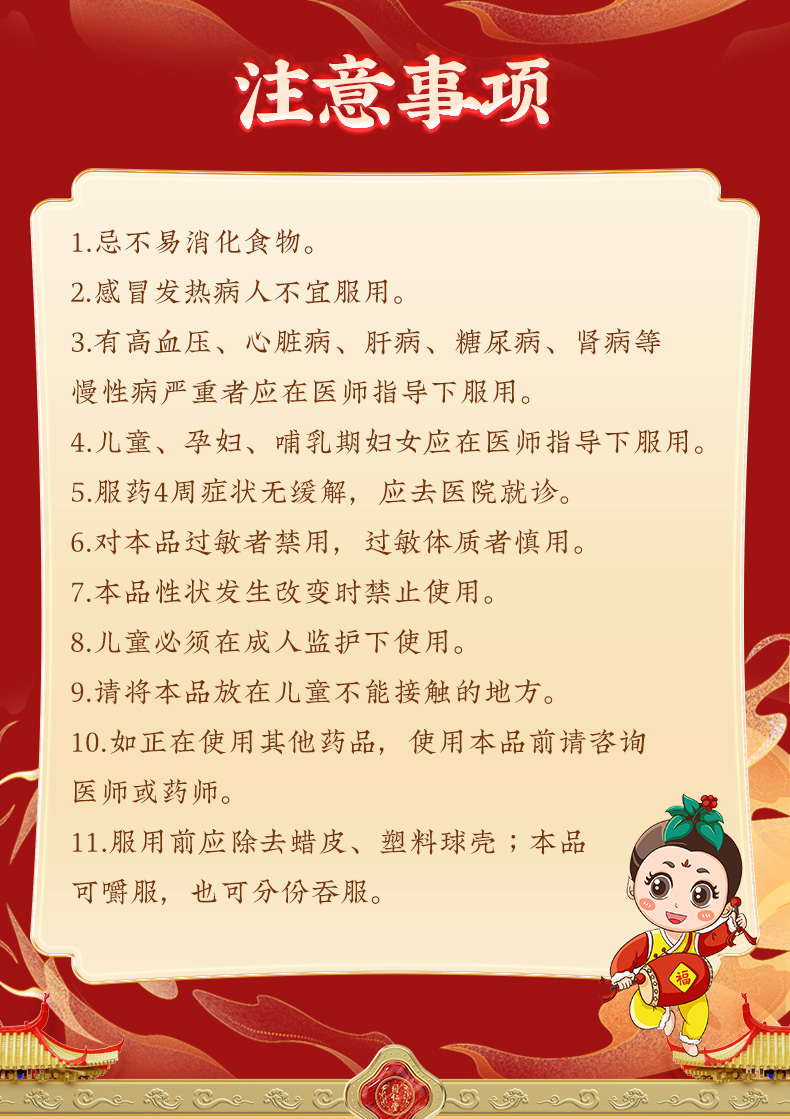 11、服用前应除去蜡皮、塑料球壳;本品可嚼服,也可分份吞服。